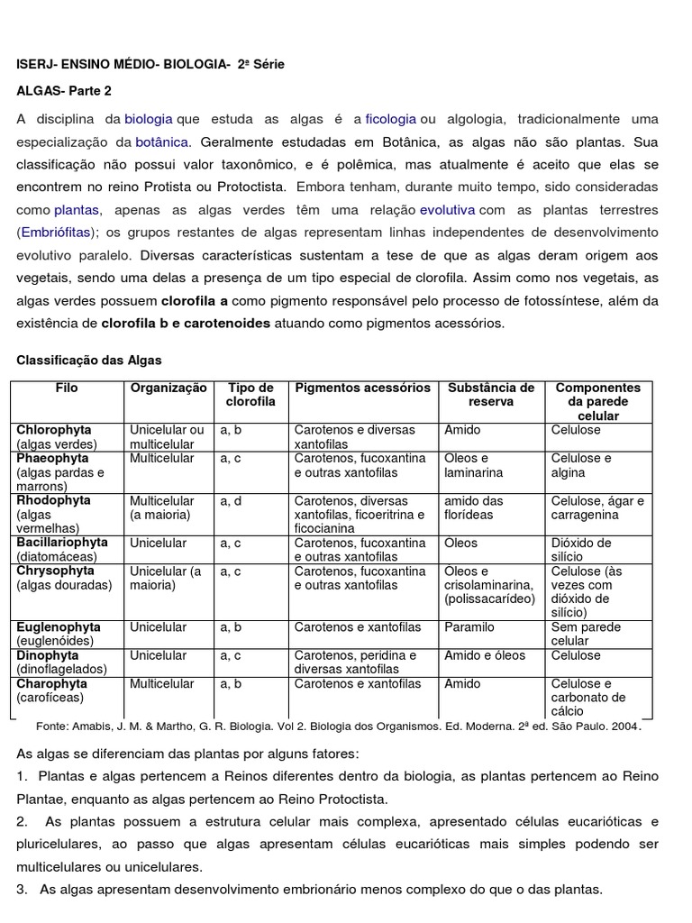 1. Plantas e algas pertencem a Reinos diferentes dentro da biologia, as plantas pertencem ao Reino