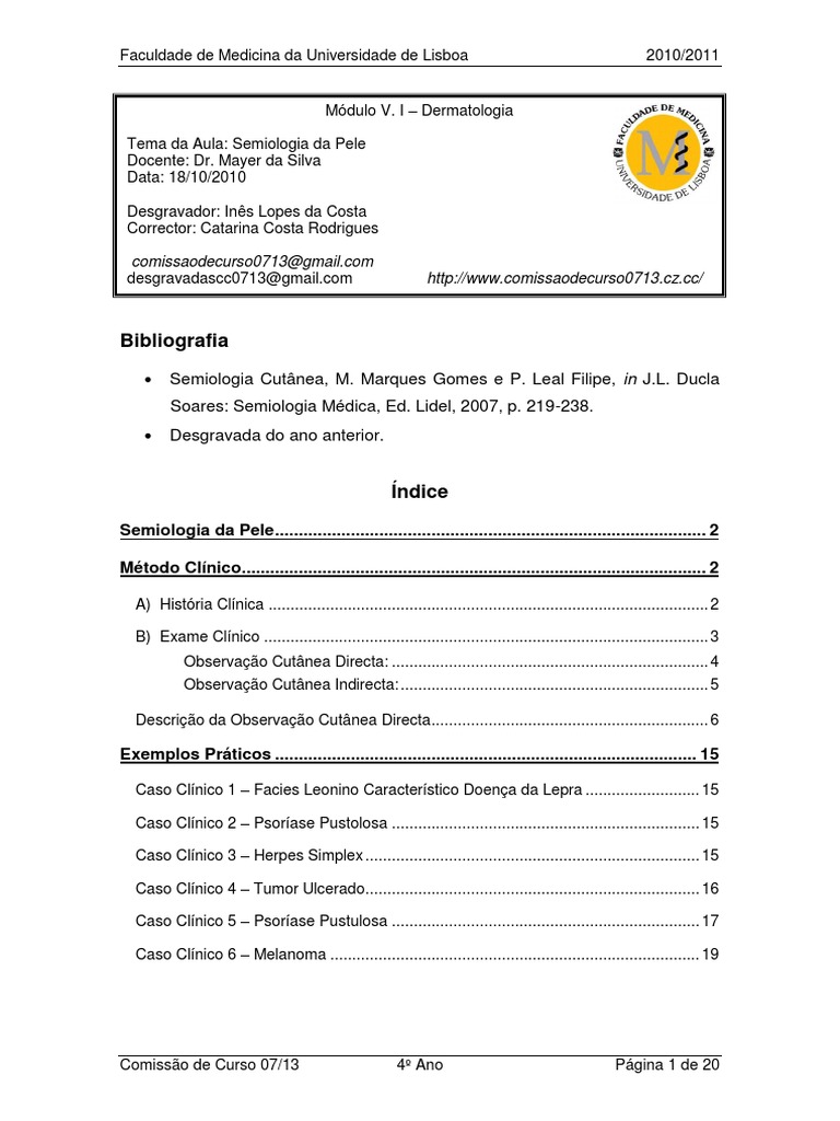 Módulo V. I – Dermatologia