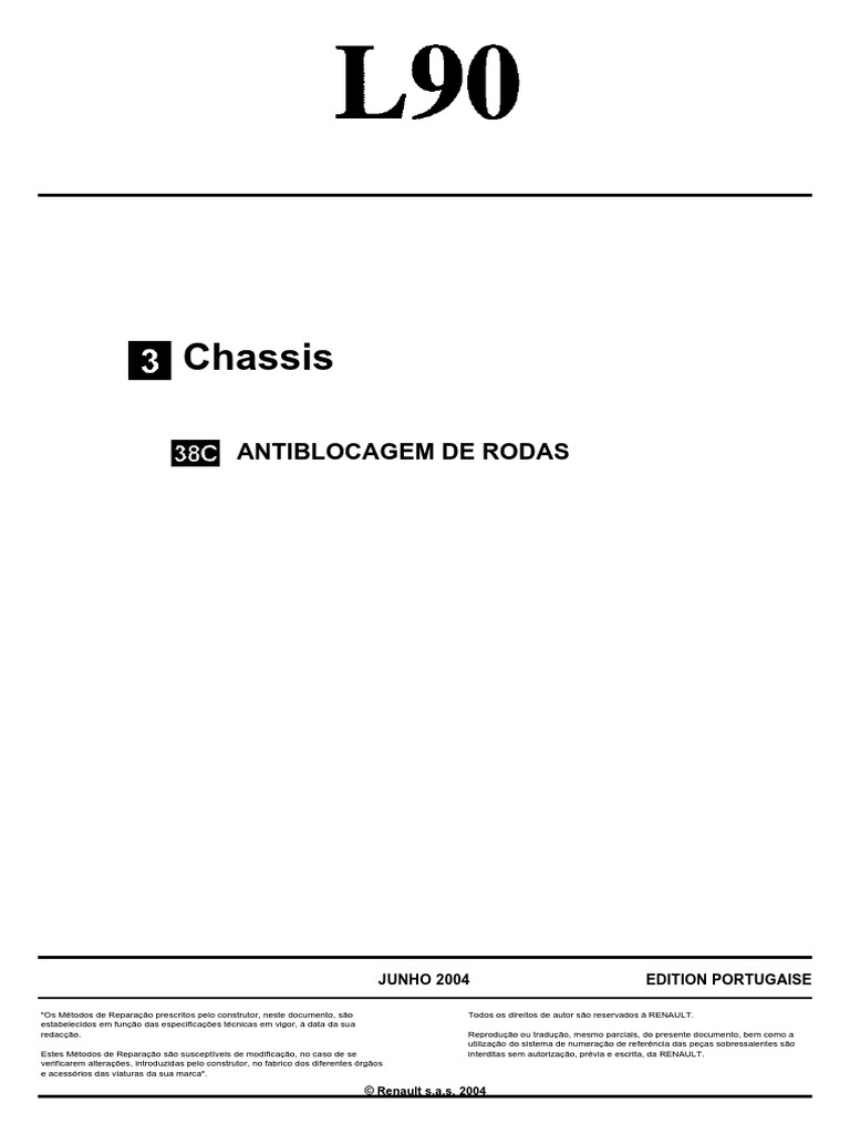 "Os Métodos de Reparação prescritos pelo construtor, neste documento, são Todos os direitos de autor são reservados à RENAULT.