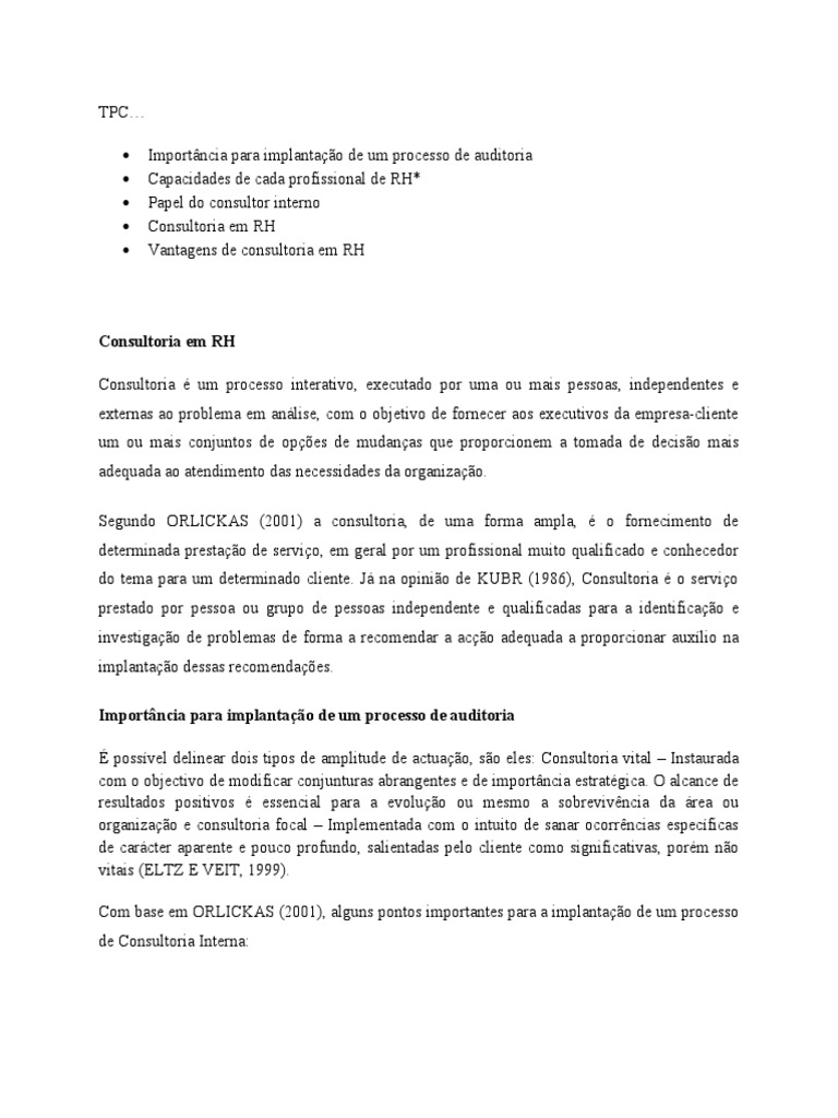 de Consultoria Interna: