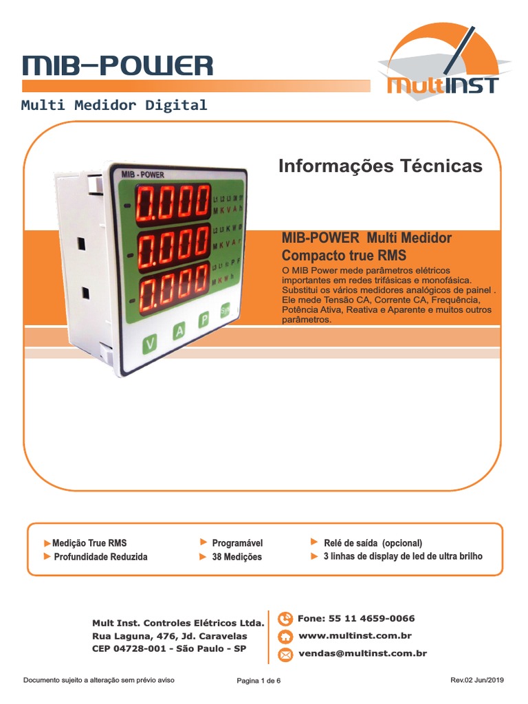 Documento sujeito a alteração sem prévio aviso Pagina 1 de 6 Rev.02 Jun/2019