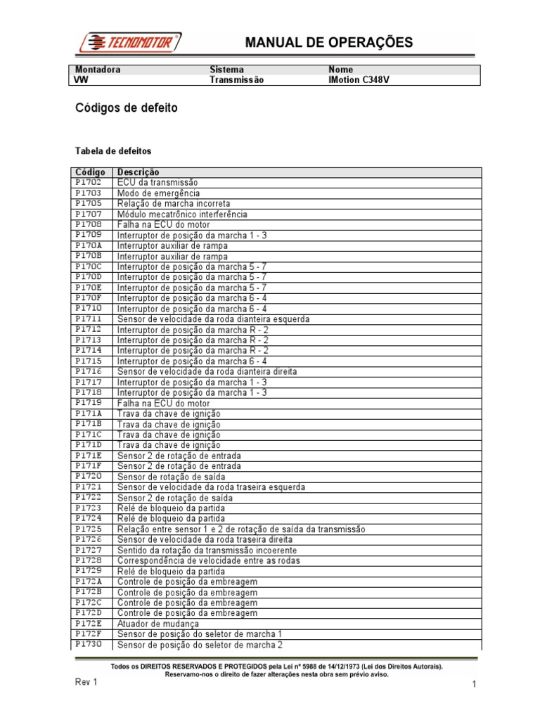 P1718 Interruptor de posição da marcha 1 - 3