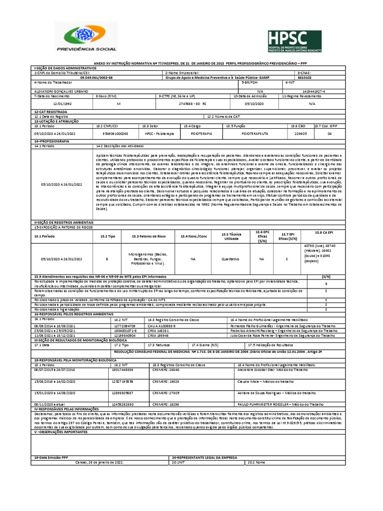 PROFISSIOGRAFICO PREVIDENCIÁRIO – PPP