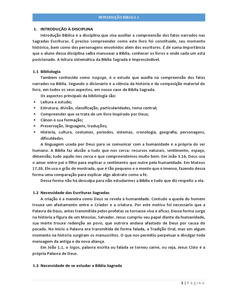 Introdução Bíblica é a disciplina que visa auxiliar a compreensão dos fatos narrados nas