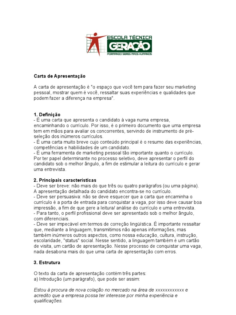 - É uma carta que apresenta o candidato à vaga numa empresa,