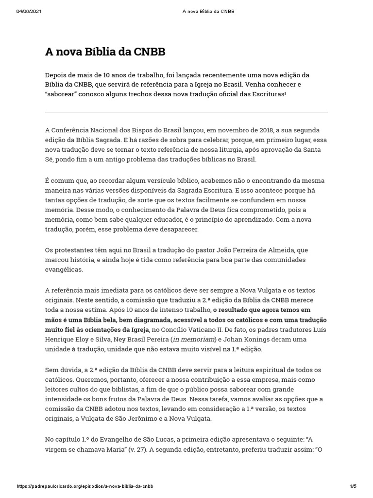 04/06/2021 A nova Bíblia da CNBB
