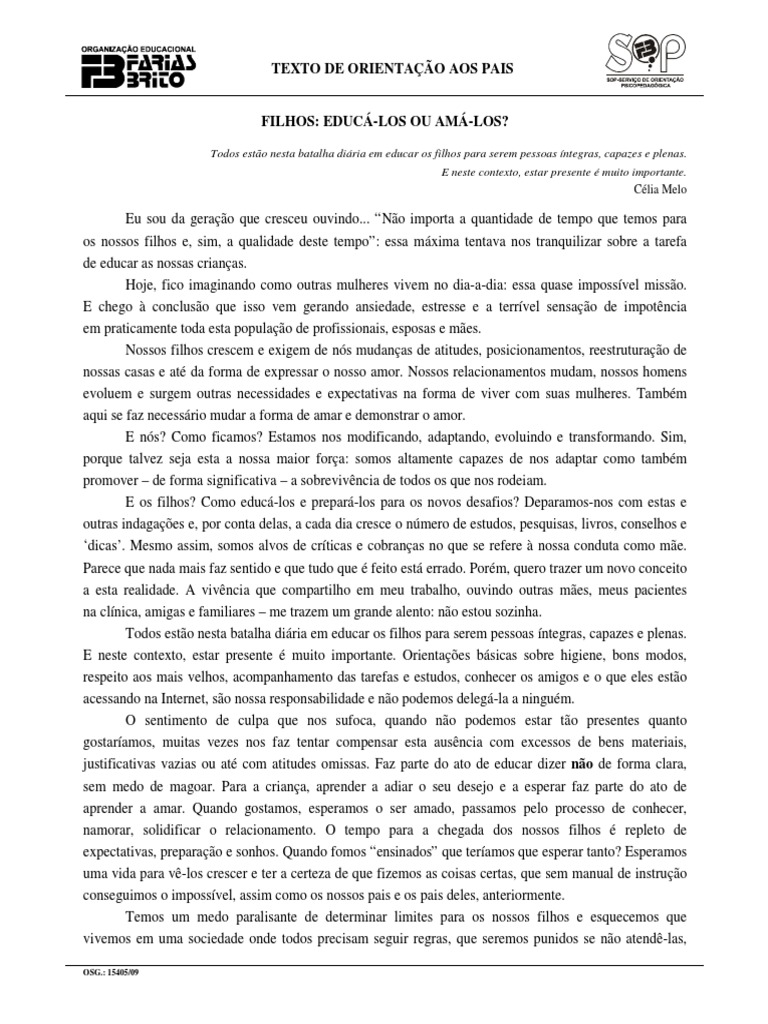 TEXTO DE ORIENTAÇÃO AOS PAIS