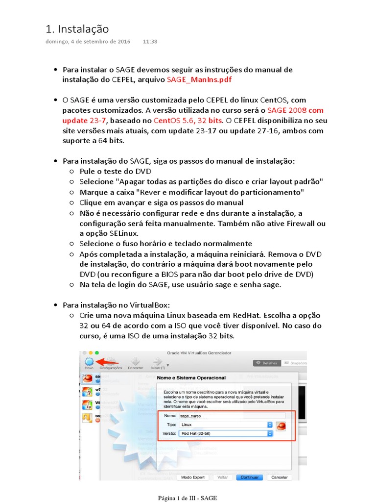 • Para instalação do SAGE, siga os passos do manual de instalação: