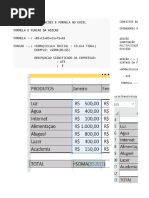 Total US$: dividir Total R$ por Valor do Dólar – usar $ nas fórmulas