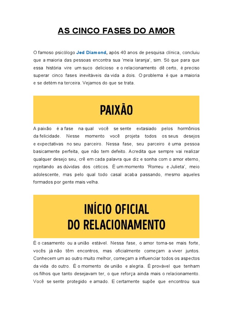e expectativas no seu parceiro. Nessa fase, seu parceiro é uma pessoa