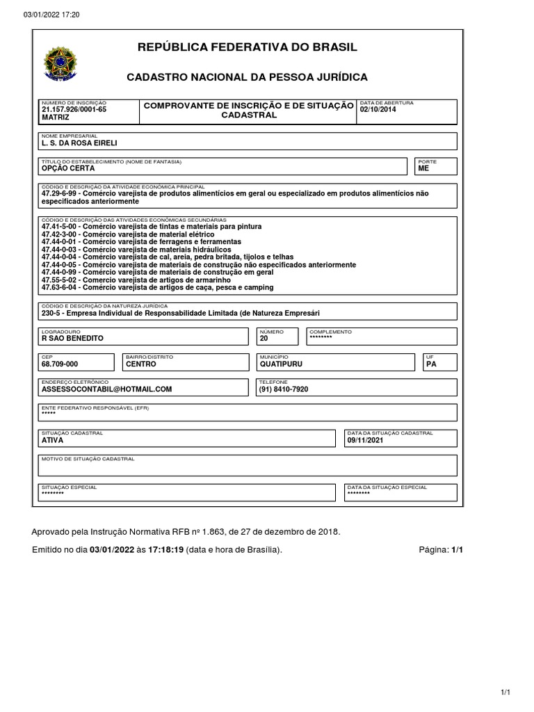 Emitido no dia 03/01/2022 às [Link] (data e hora de Brasília). Página: 1/1