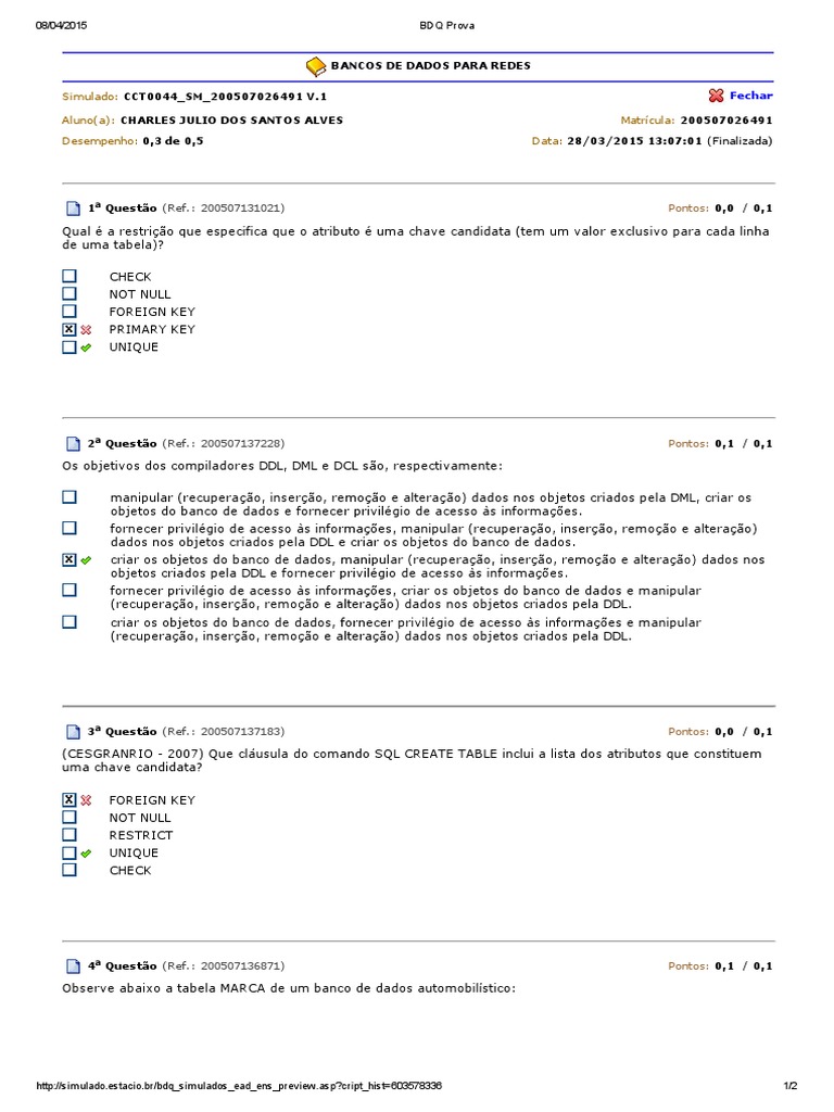 Desempenho: 0,3 de 0,5 Data: 28/03/2015 [Link] (Finalizada)