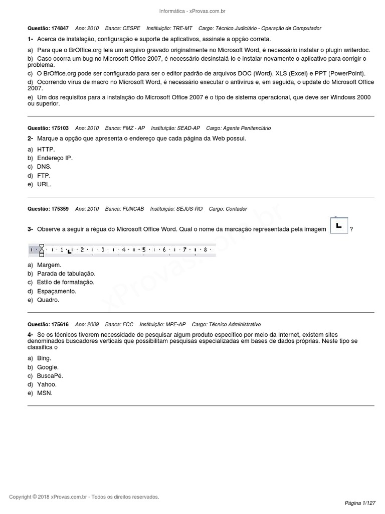 Questão: 174847 Ano: 2010 Banca: CESPE Instituição: TRE-MT Cargo: Técnico Judiciário - Operação de Computador