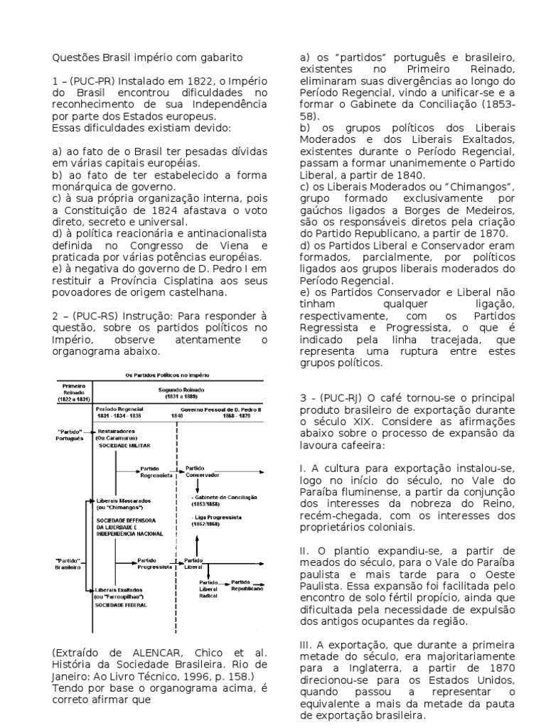 Questões Brasil império com gabarito a) os “partidos” português e brasileiro,