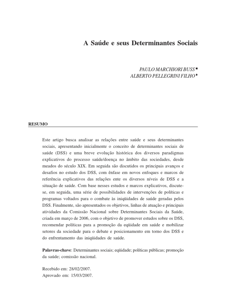 Este artigo busca analisar as relações entre saúde e seus determinantes