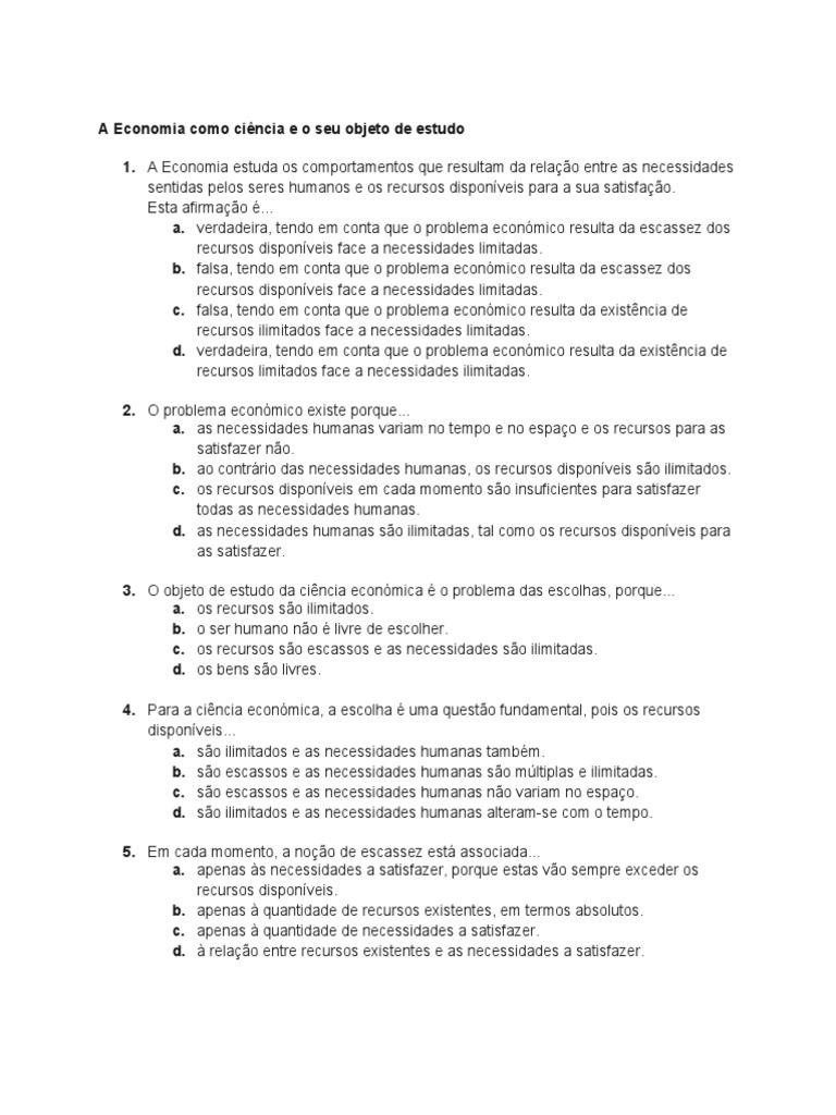 a. verdadeira, tendo em conta que o problema económico resulta da escassez dos
