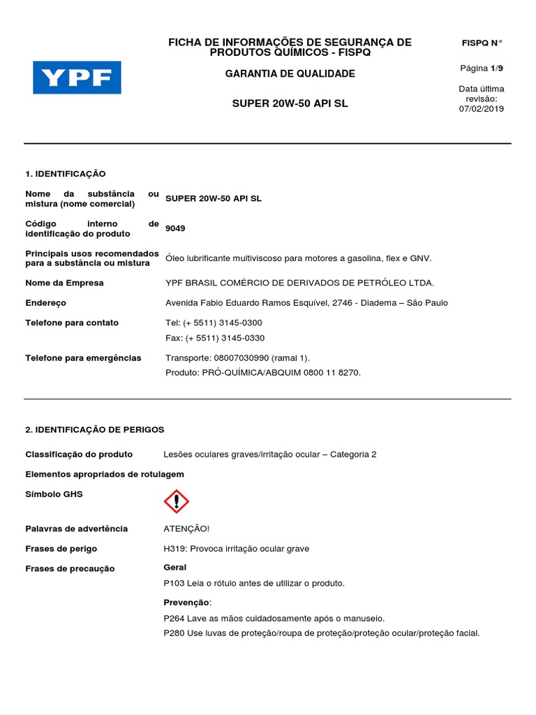 SUPER 20W-50 API SL 07/02/2019