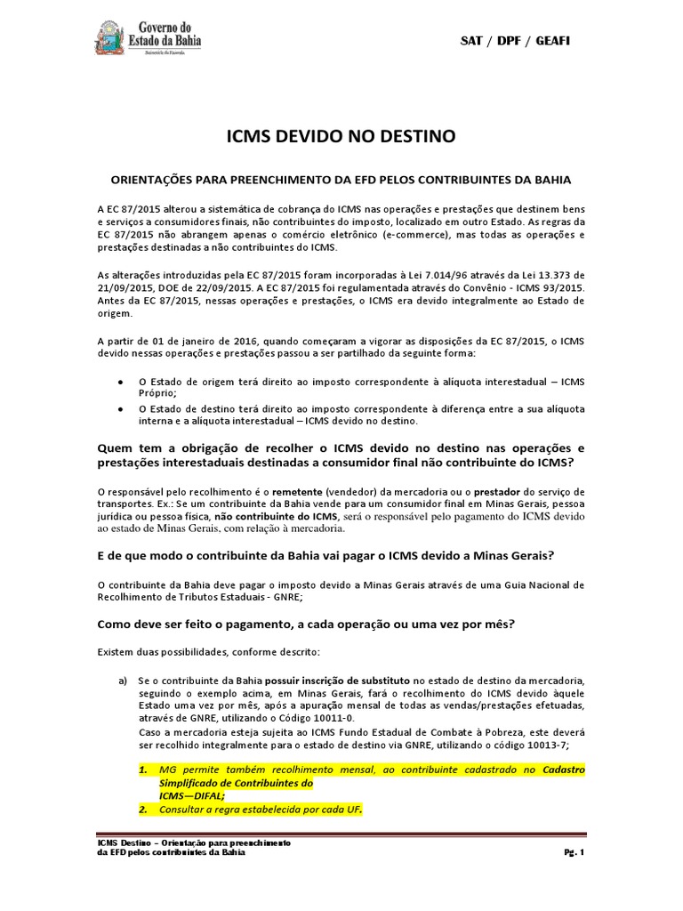 da EFD pelos contribuintes da Bahia Pg. 1
