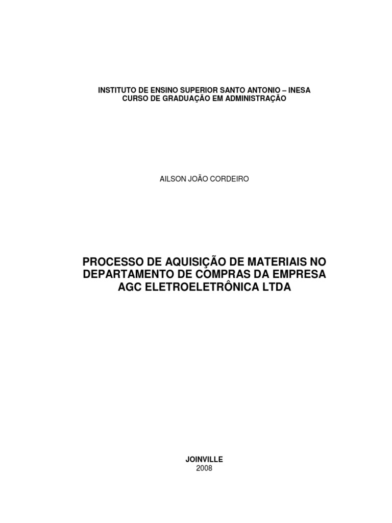 compras da empresa AGC Eletroeletrônica, visando detectar problemas e realizar