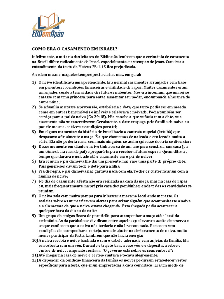 3) Em alguns momentos da história de Israel havia o contrato nupcial (ketubá) que