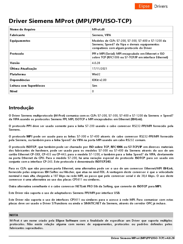 M-Prot é um nome criado pela Elipse Software com a finalidade de especificar um Driver que suporta múltiplos
