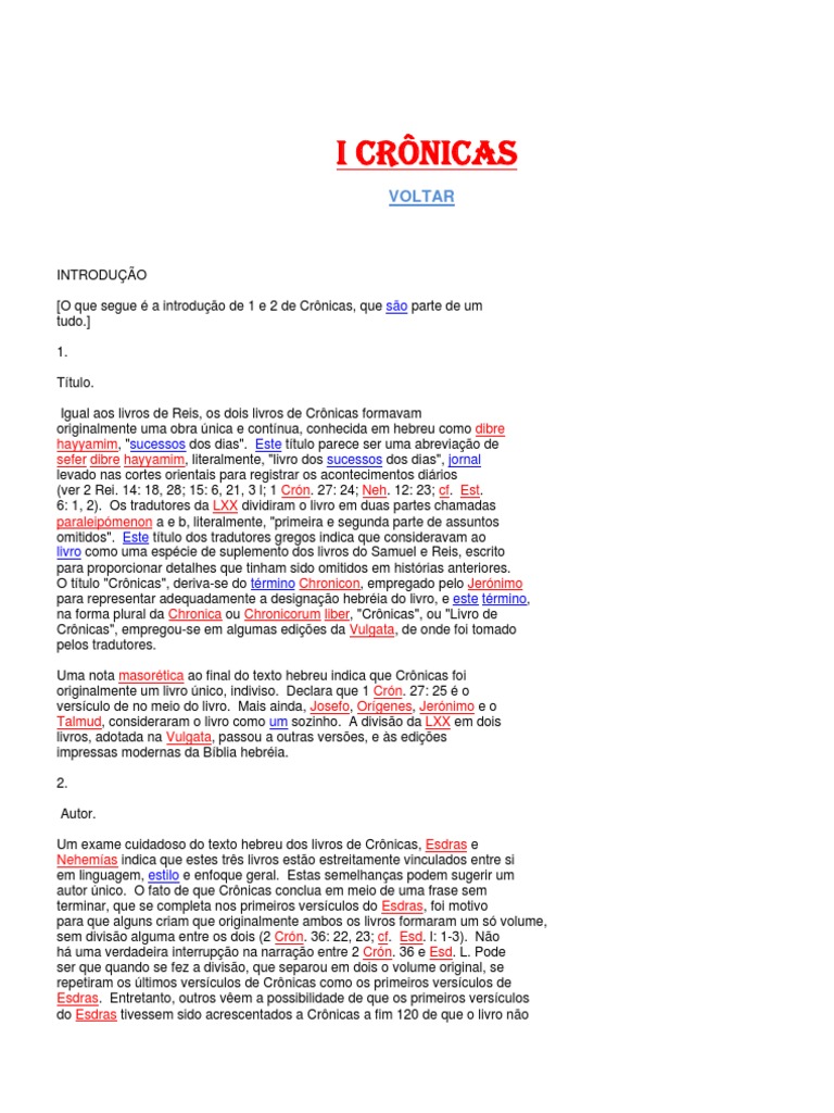 [O que segue é a introdução de 1 e 2 de Crônicas, que são parte de um