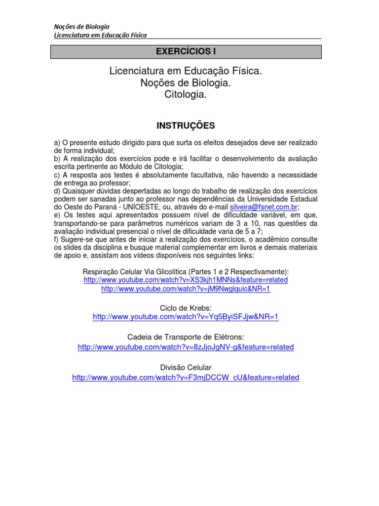 escrita pertinente ao Módulo de Citologia;