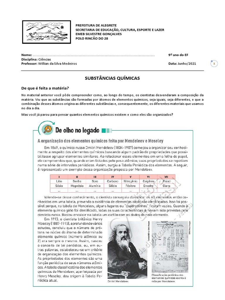 químicos e criou outros para os elementos que não eram conhecidos. Observe exemplos: