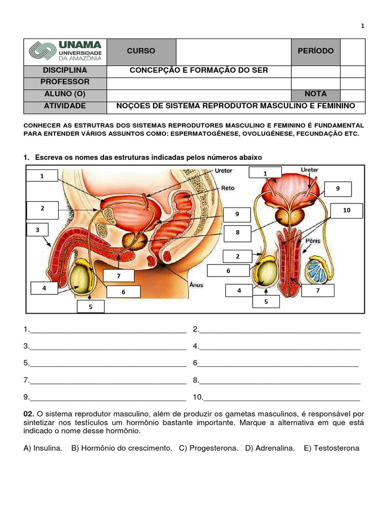 ATIVIDADE NOÇÕES DE SISTEMA REPRODUTOR MASCULINO E FEMININO