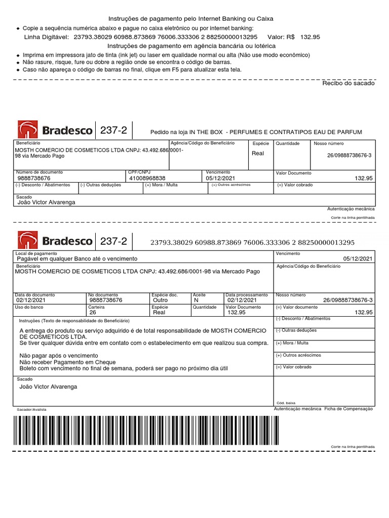 Pagável em qualquer Banco até o vencimento 05/12/2021
