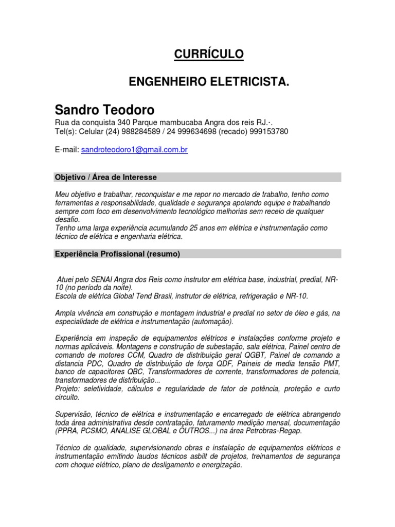 elétrica e instrumentação na área industrial e predial, venho me qualificando de acordo com o