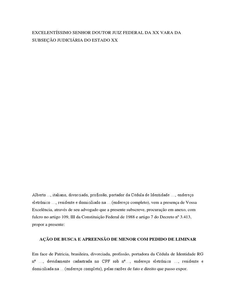 AÇÃO DE BUSCA E APREENSÃO DE MENOR COM PEDIDO DE LIMINAR