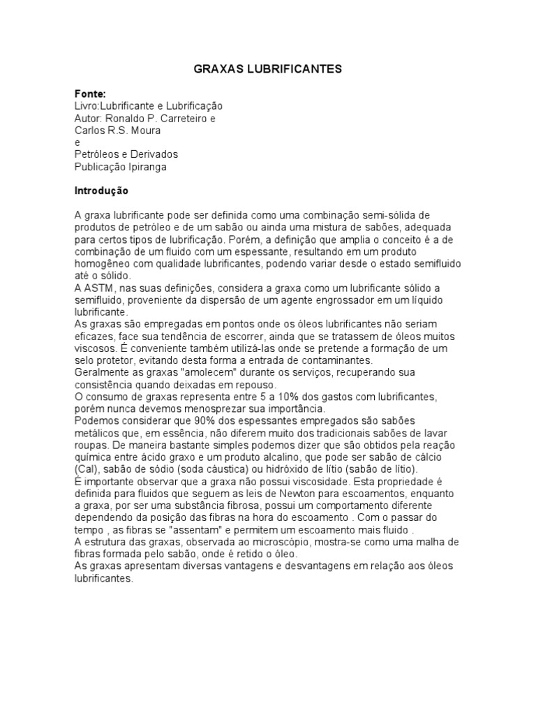É importante observar que a graxa não possui viscosidade. Esta propriedade é