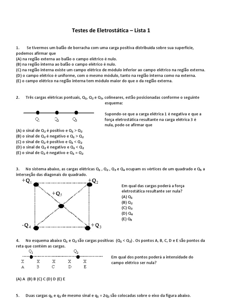 Testes de Eletrostática – Lista 1