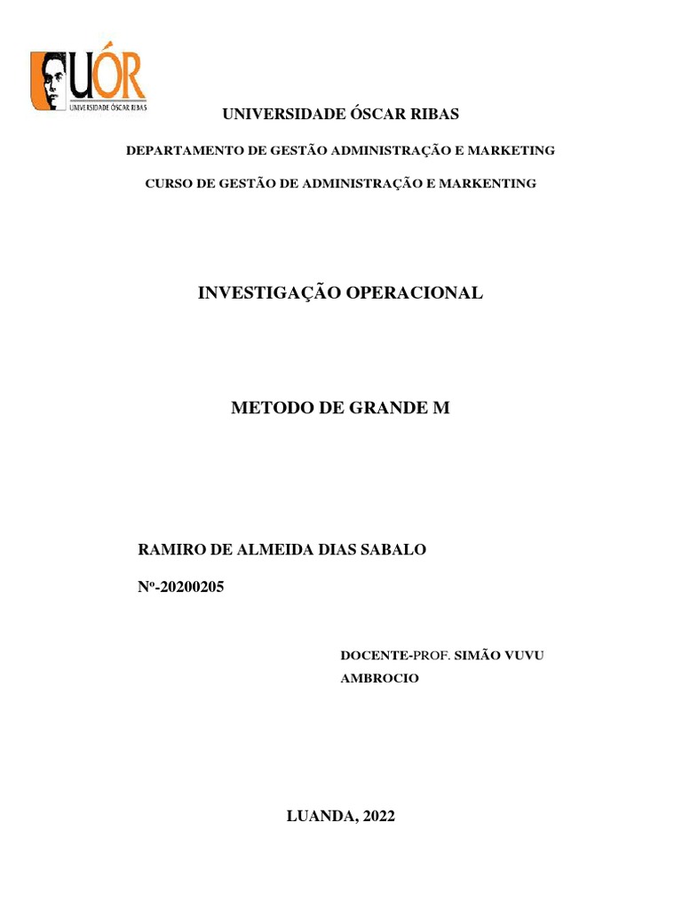 factível é o método M grande. Este método é conceitualmente simples e sua