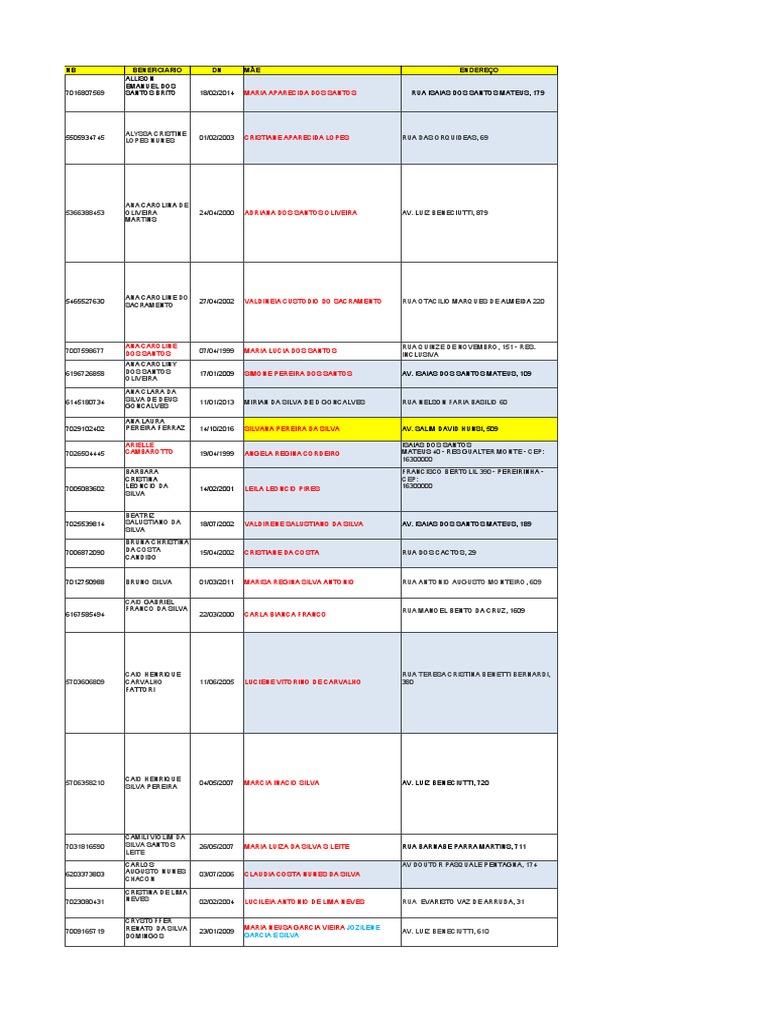 5366388453 OLIVEIRA 24/04/2000 ADRIANA DOS SANTOS OLIVEIRA AV. LUIZ BENECIUTTI, 879