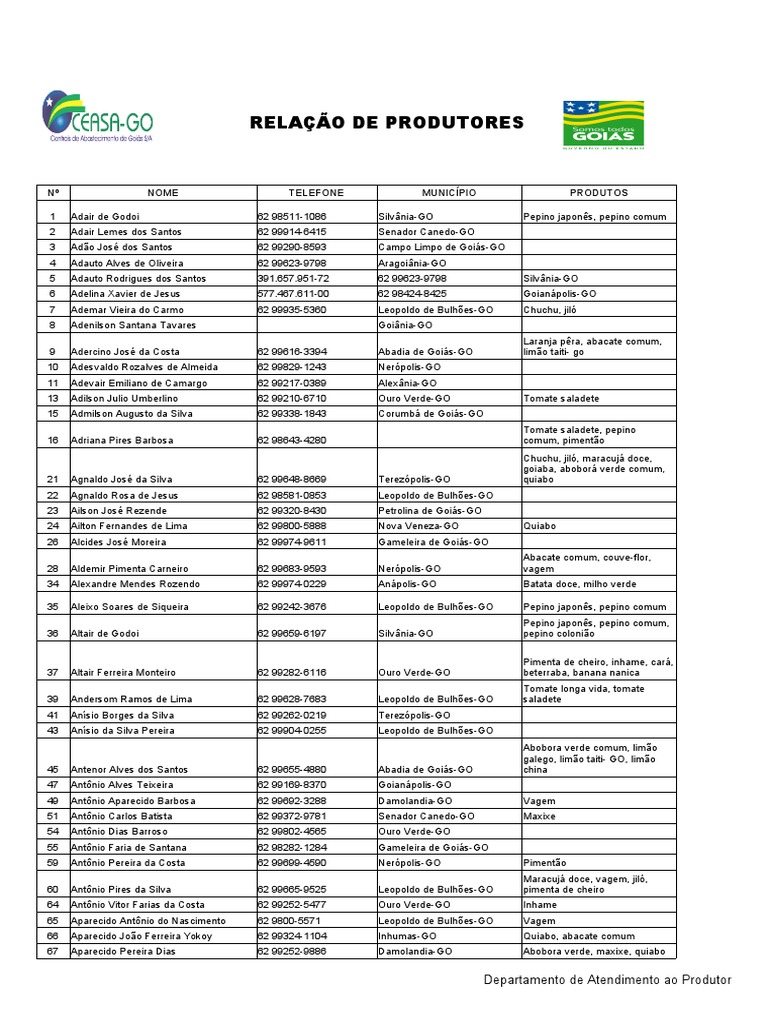 RELAÇÃO DE PRODUTORES