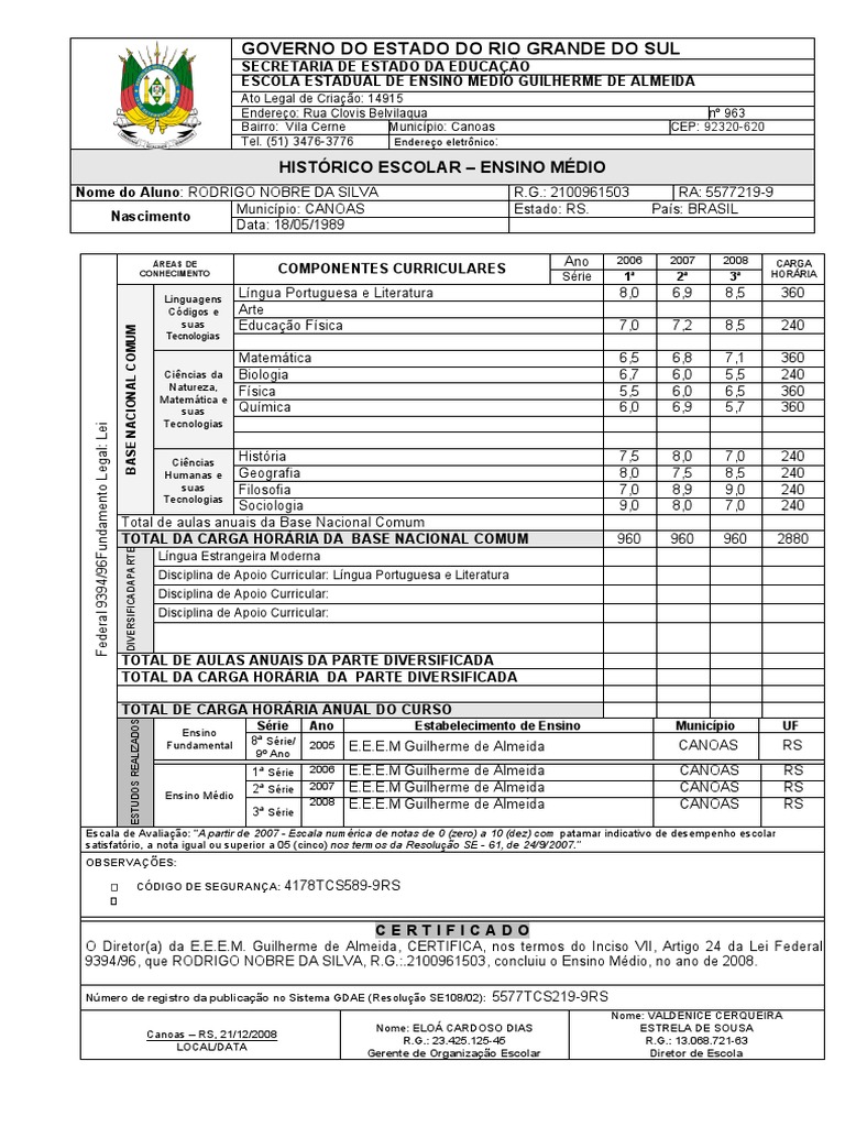 9394/96, que RODRIGO NOBRE DA SILVA, R.G.:.2100961503, concluiu o Ensino Médio, no ano de 2008.
