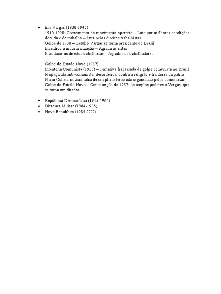 Golpe do Estado Novo – Constituição de 1937: dá amplos poderes a Vargas, que