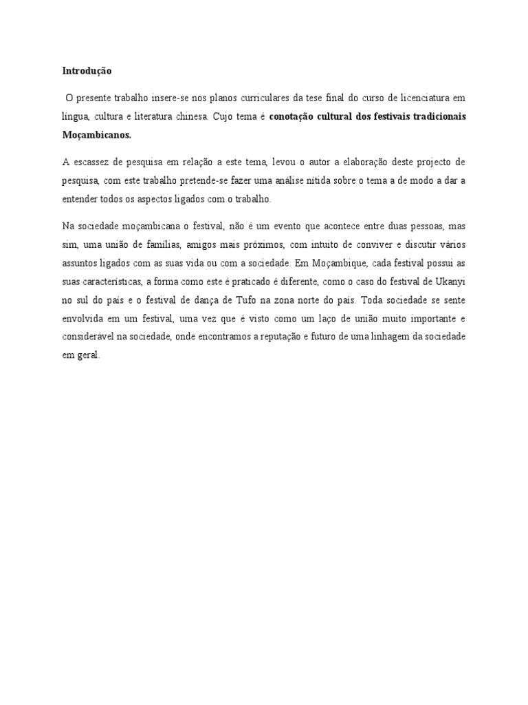 questões ligadas a conotação cultural dos festivais tradicionais moçambicanos. Ademais, o
