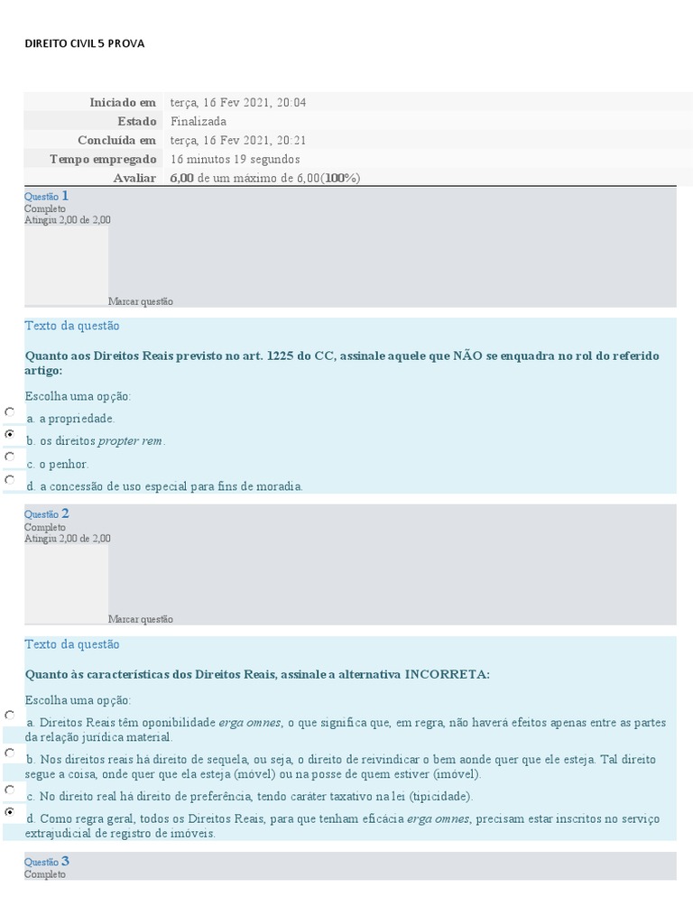 DIREITO CIVIL 5 PROVA