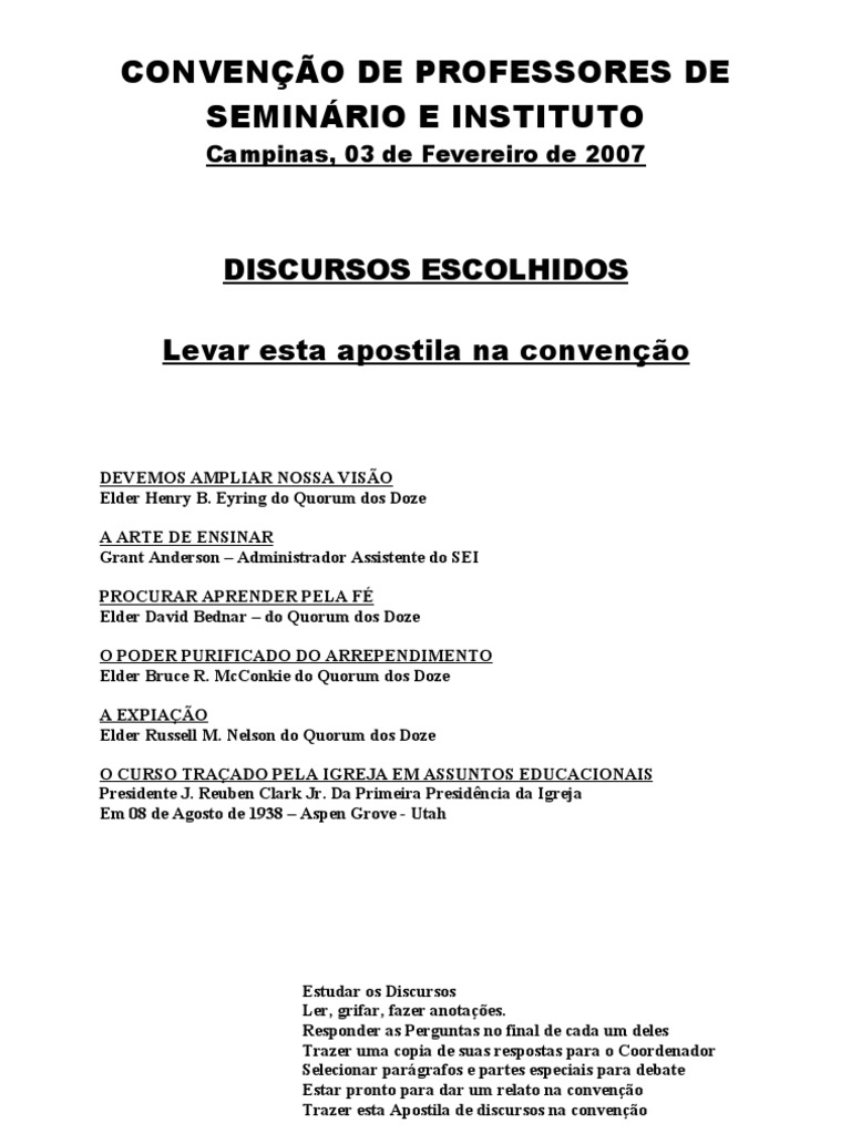 nossos seminários e institutos de religião a menos que eles sirvam para ensinar o evangelho da maneira prescrita. O