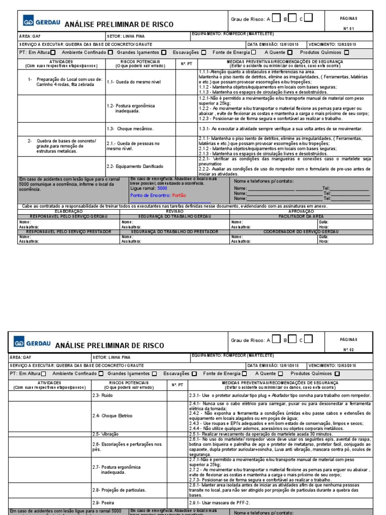 ANÁLISE PRELIMINAR DE RISCO Grau de Risco: A B C PÁGINAS