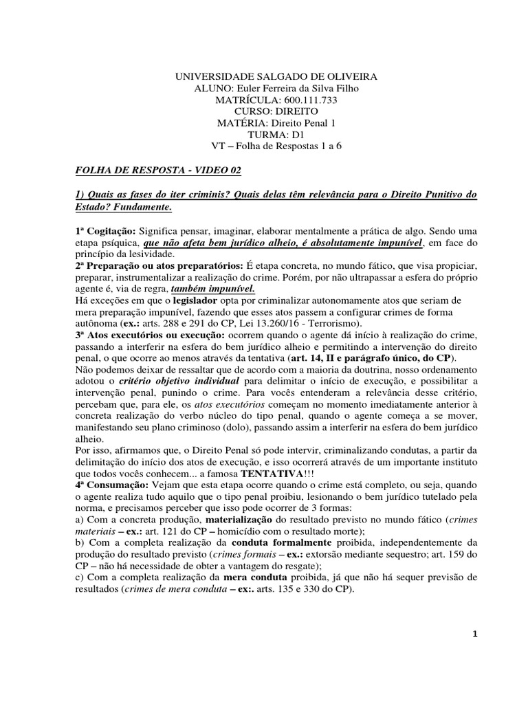 1) Quais as fases do iter criminis? Quais delas têm relevância para o Direito Punitivo do