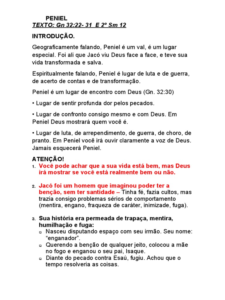 TEXTO: Gn 32:22- 31 E 2º Sm 12