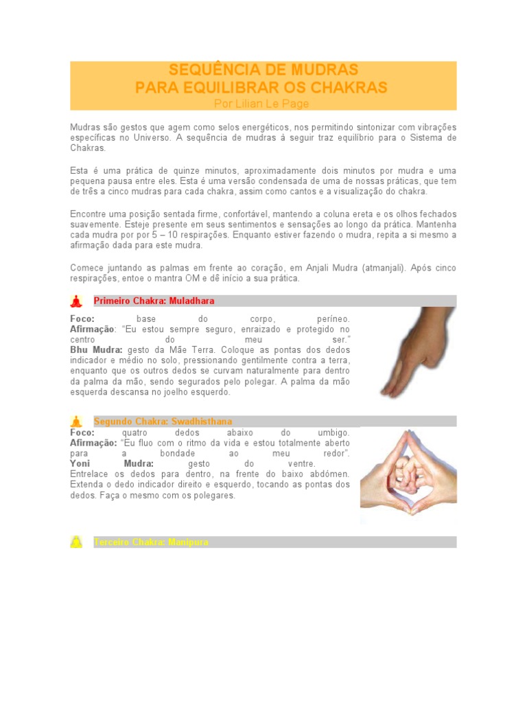 de três a cinco mudras para cada chakra, assim como cantos e a visualização do chakra.