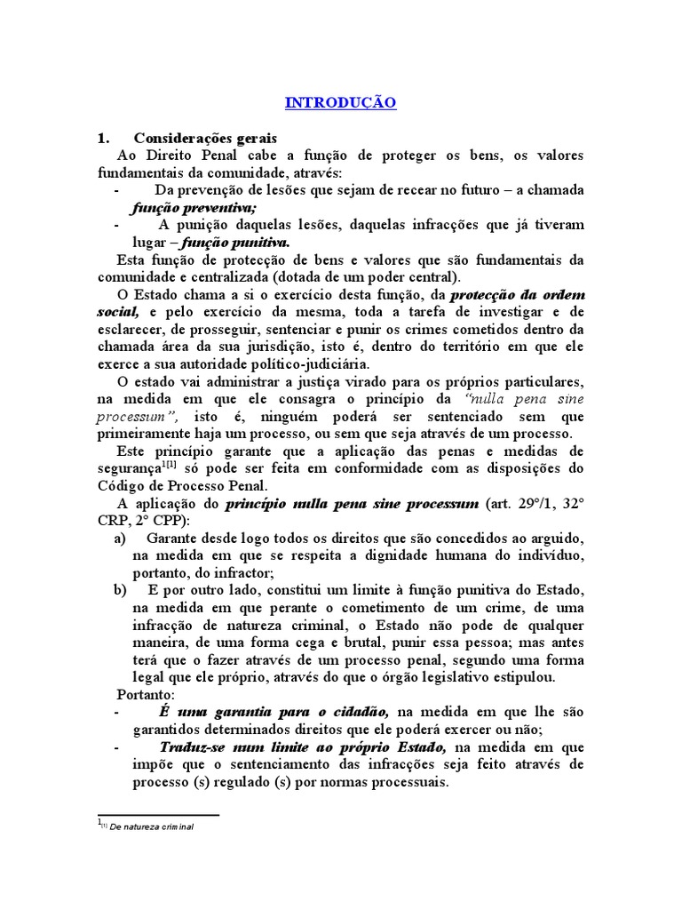 A aplicação do princípio nulla pena sine processum (art. 29º/1, 32º