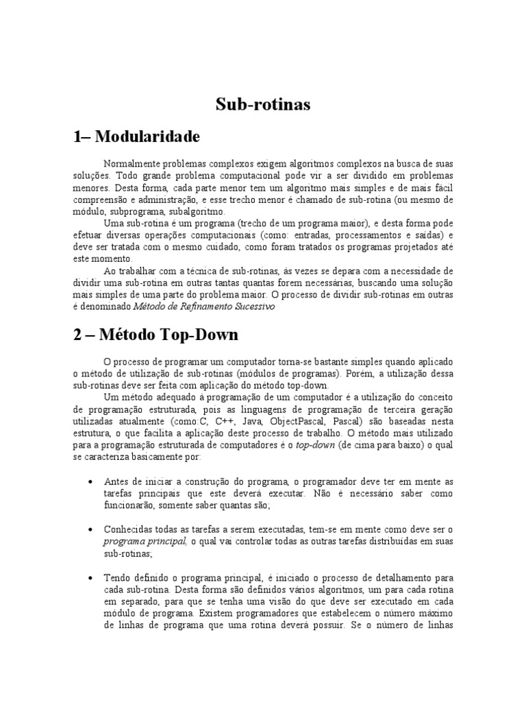 sub-rotinas deve ser feita com aplicação do método top-down.