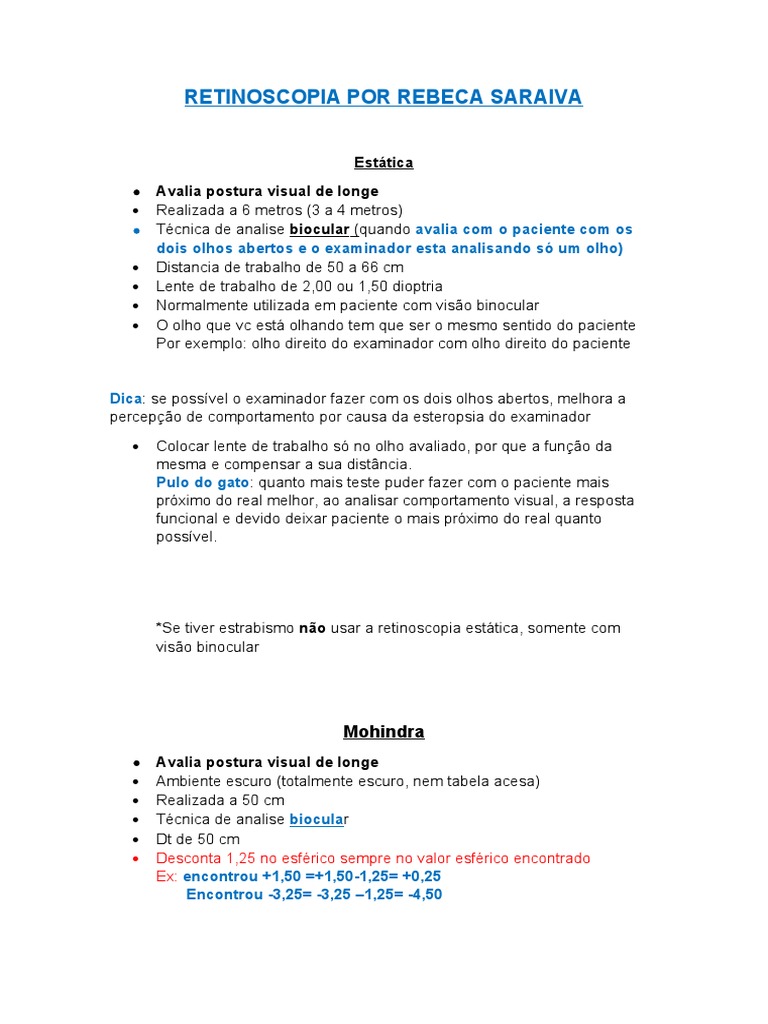 *Se tiver estrabismo não usar a retinoscopia estática, somente com