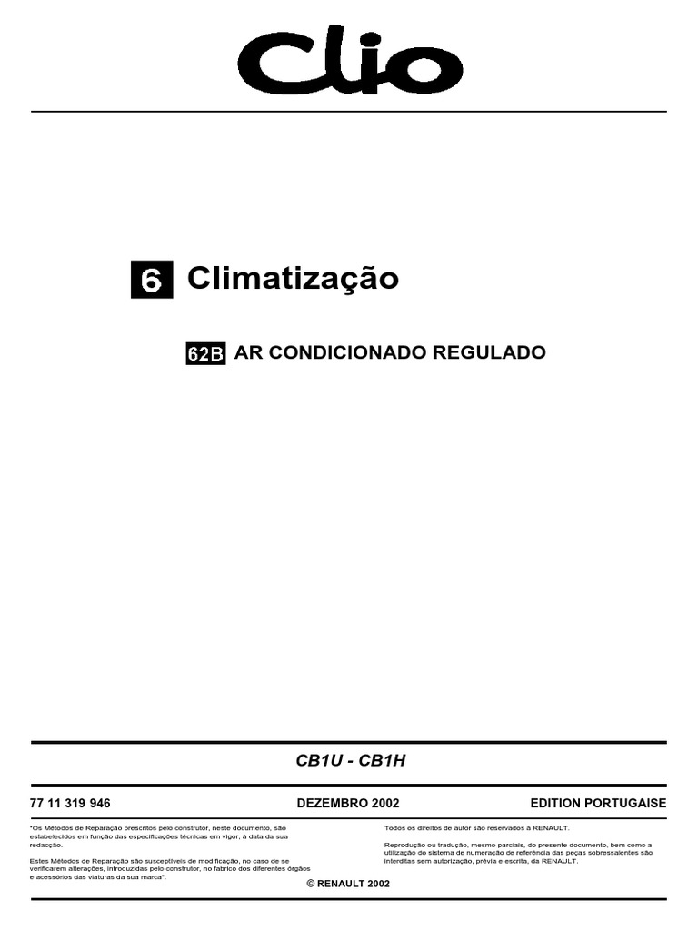 "Os Métodos de Reparação prescritos pelo construtor, neste documento, são Todos os direitos de autor são reservados à RENAULT.